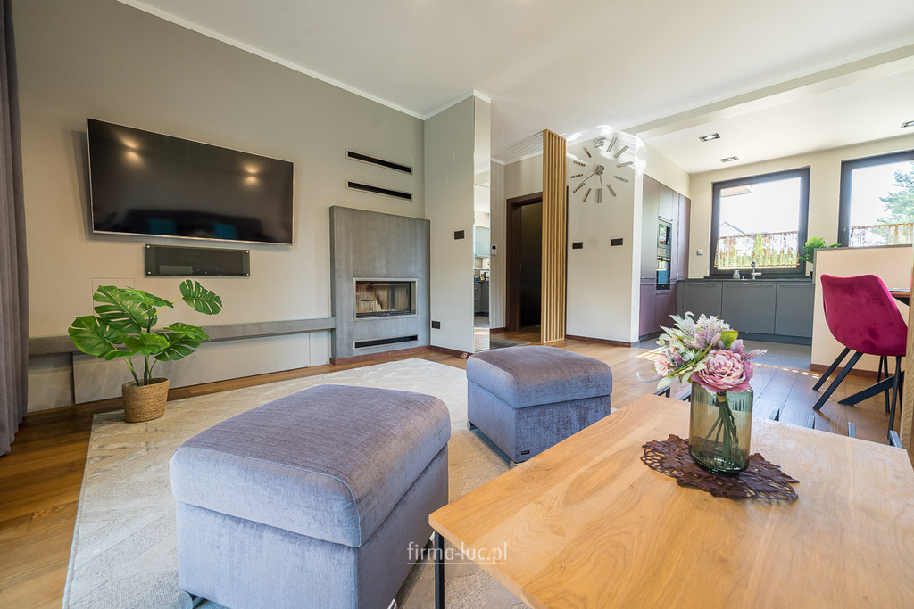 Nowoczesny, oszczędny piec gazowy + klimatyczny kominek w salonie na zimowe wieczory.