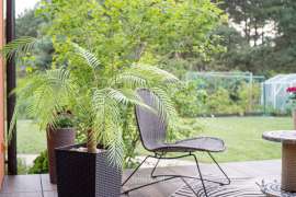Całość ogrodzona, z licznymi nasadzeniami i miejscem do relaksu. Wydzielona przestrzeń na warzywnik lub ogródek ziołowy. Idealna dla rodzin z dziećmi i osób ceniących kontakt z naturą.