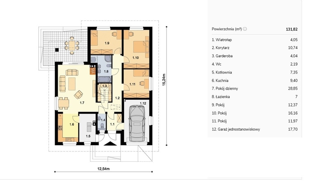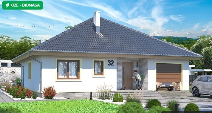 Z garażem w bryle budynku. Poddasze nieużytkowe.