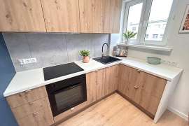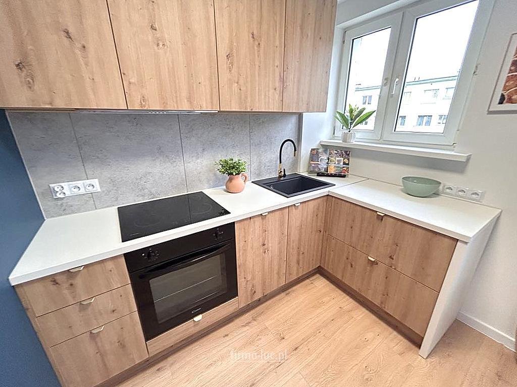 - zabudowa kuchenna wykonana na wymiar przez stolarza, sprzęt agd: nowa płyta indukcyjna, piekarnik, okap, zlewozmywak,