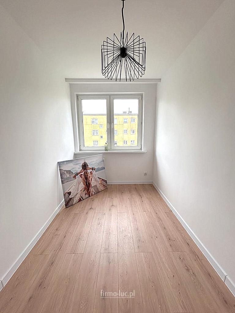 Ściany szpachlowane, malowane, miejscowo tapeta, okna pcv, nowe drzwi wewnętrzne wraz z ościeżnicami, nowe drzwi zewnętrzne, nowa armatura łazienkowa. W kuchni przewidziane jest miejsce pod zabudowę lodówki i zmywarki a w łazience miejsce pod pralkę.