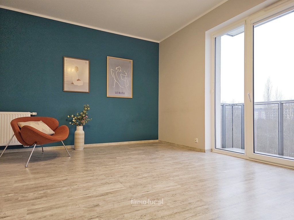Mieszkanie ustawne, składa się z salonu z aneksem kuchennym z wyjściem na balkon, 2 sypialni, przedpokoju z obszerną szafą w zabudowie oraz łazienki z wc. Z balkonu oraz z pozostałych okien przyjemny widok na park i okolicę.