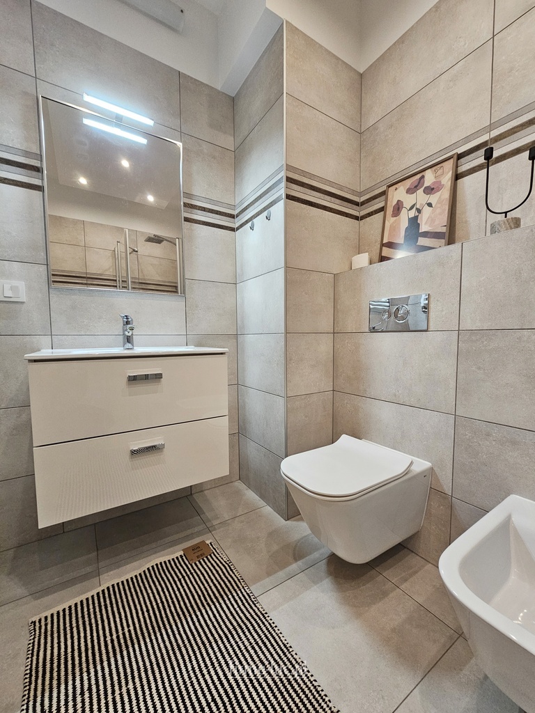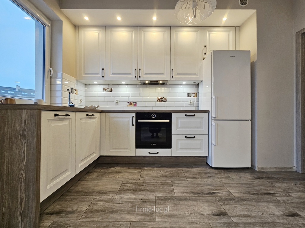 Całość wykończona w ponadczasowych kolorach, dobrze utrzymana. W mieszkaniu pozostaje wszelka zabudowa stała, meble kuchenne wraz ze sprzętem AGD oraz pralka.
