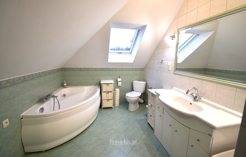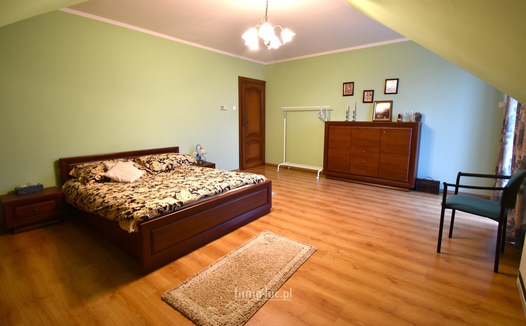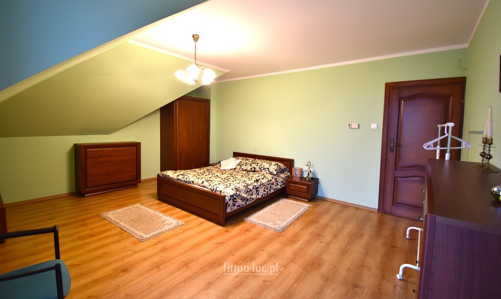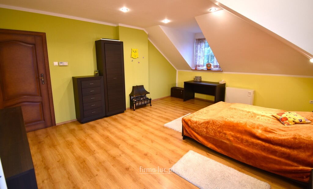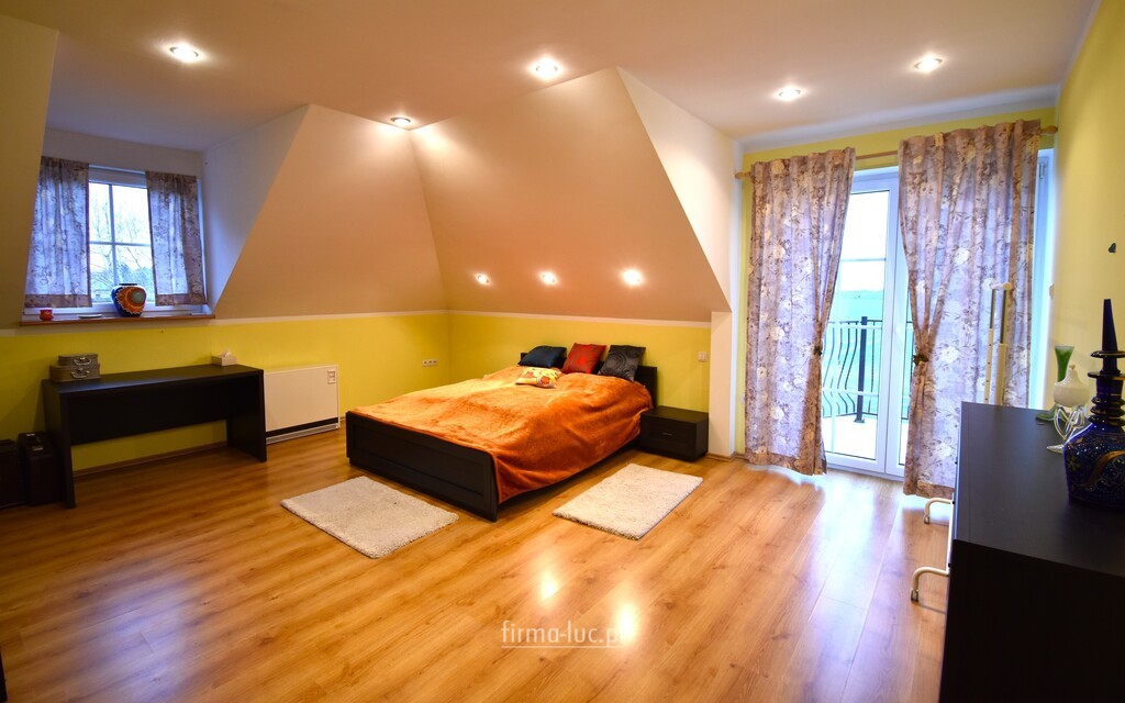 Na poziomie pierwszego piętra cztery niezależne sypialnie w tym dwie z wyjściem na wspólny balkon oraz łazienka z wanną i toaletą.