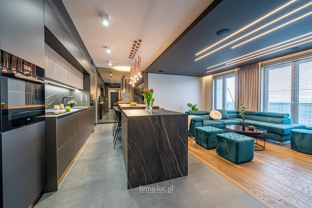 To mieszkanie zostało zaprojektowane tak, aby było nie tylko piękne, ale również trwałe i komfortowe w codziennym użytkowaniu.