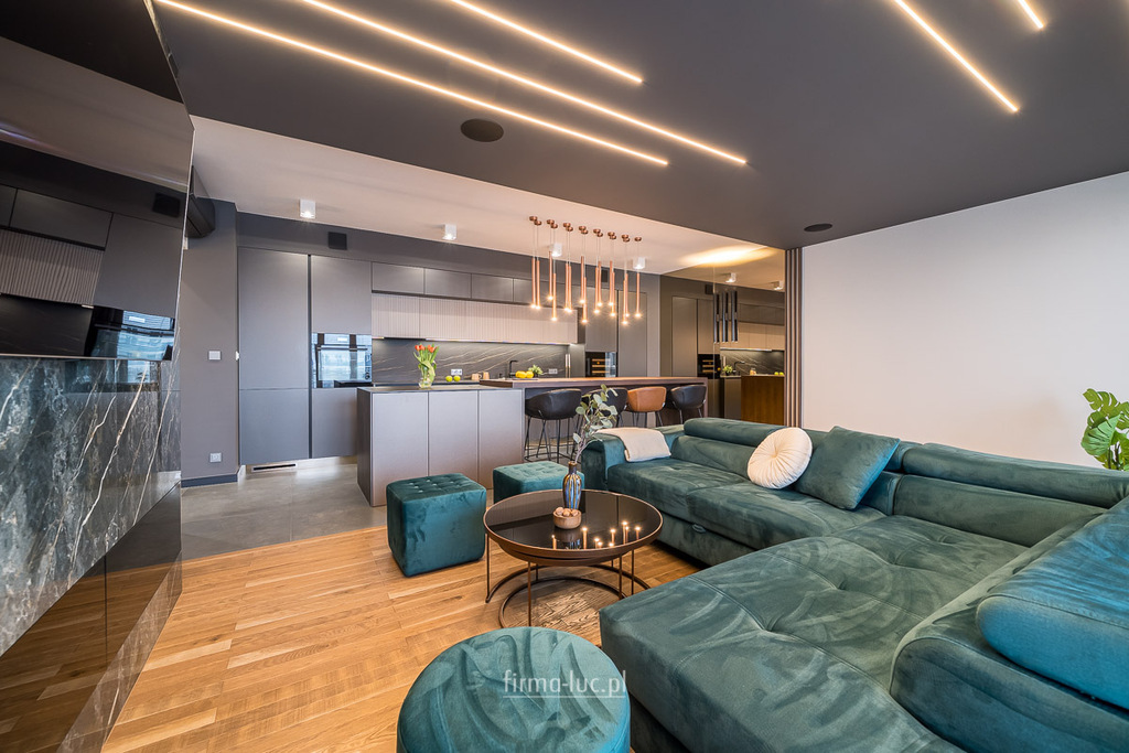 Zabudowy sufitowe i konstrukcje wykonano w sposób niestandardowy – z zastosowaniem dodatkowych wzmocnień, aby uniknąć pęknięć i zapewnić wieloletnią stabilność.