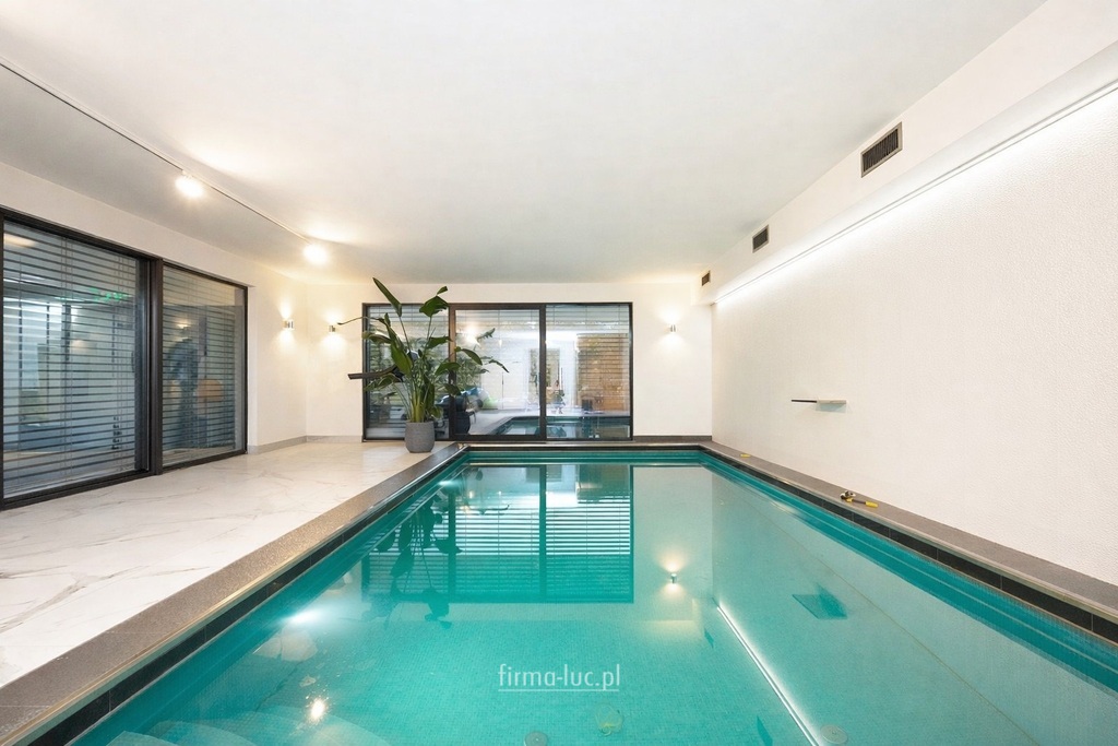 Wyjątkowym atutem tej nieruchomości jest prywatna strefa relaksu: basen z przeciwprądem, sauna oraz podpiwniczenie pod częścią basenową. To przestrzeń, która pozwala odpocząć po pracy, zadbać o zdrowie i cieszyć się luksusem bez wychodzenia z domu.