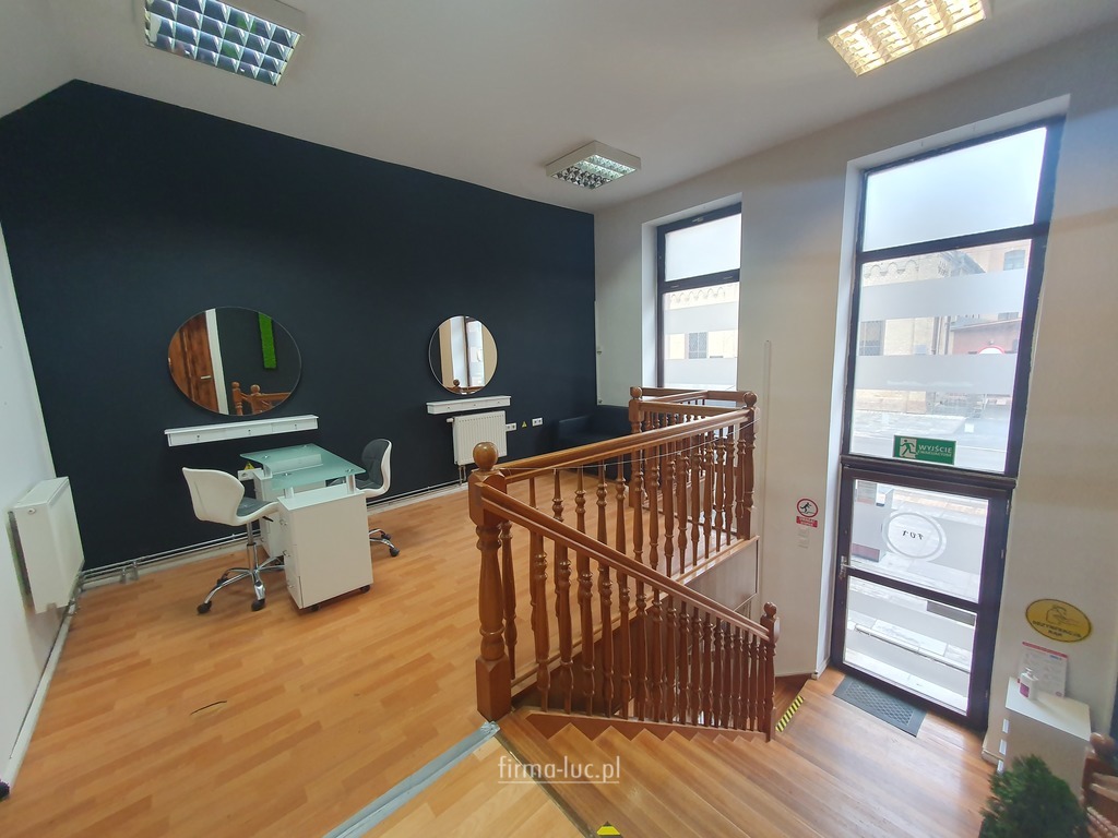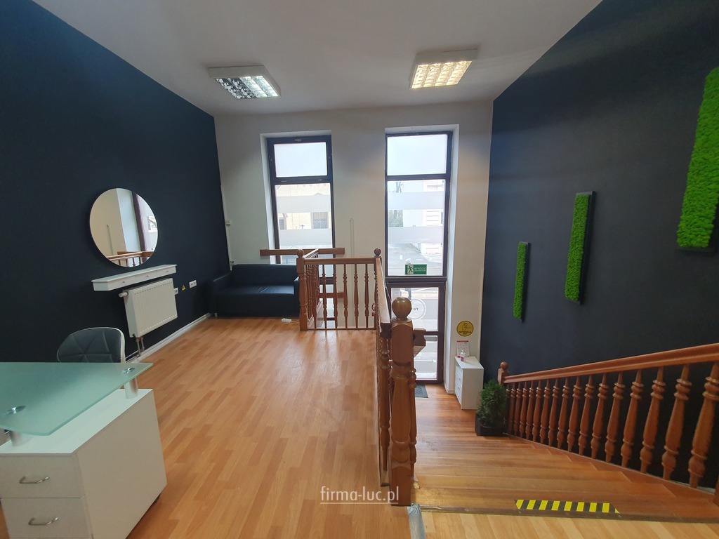 Lokal składa się z 2 poziomów. Na pierwszym poziome znajduje się pomieszczenie główne z toaletą i pomieszczeniem socjalnym, pomieszczenie na antresoli, mogące służyć jako recepcja, dodatkowe pomieszczenie z osobną toaleta, mogące służyć jako gabinet masażu, gabinet kosmetyczny lub archiwum oraz pomieszczenie w przyziemiu. Aktualnie lokal jest po remoncie - zdjęcia są poglądowe, tak wyglądał przed remontem.