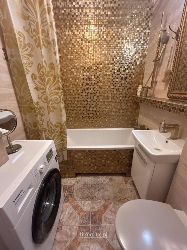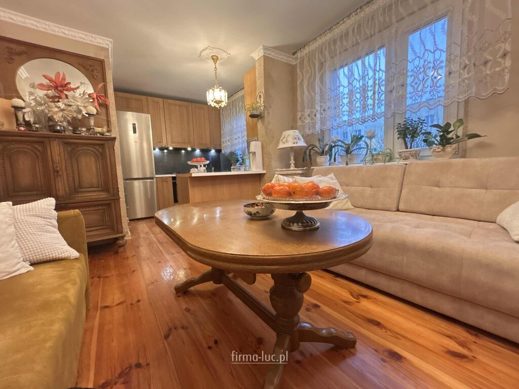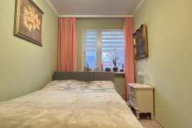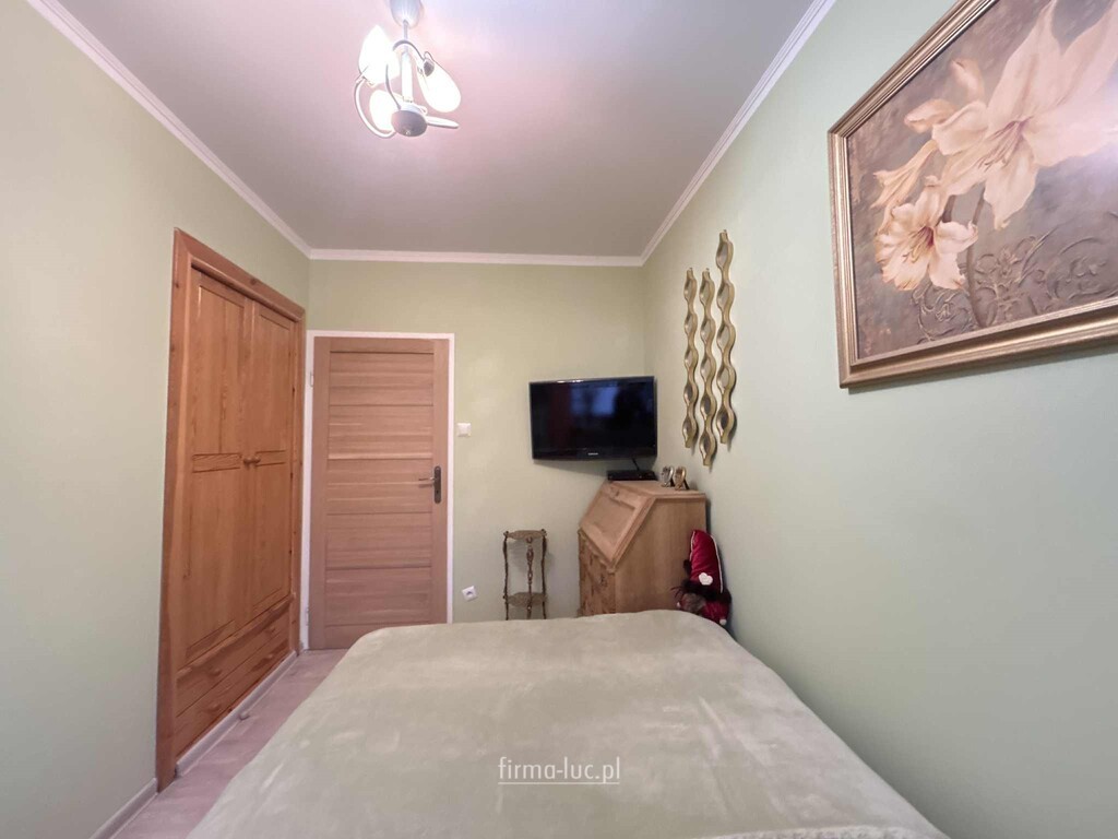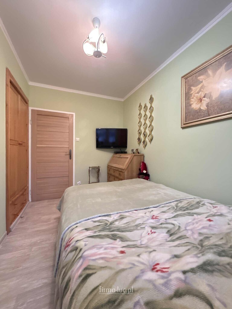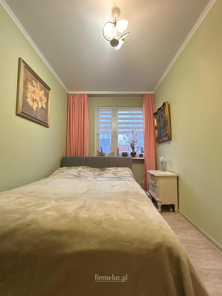 Lokal o pow. użytkowej 54 m2 znajduje się na II piętrze niskiego bloku i składa się z dużego słonecznego salonu połączonego z kuchnią, przestronnej sypialni, w której znajduje się na całej długości ściany pojemna szafa w zabudowie, z sypialni jest wyjście na balkon, oddzielnego pokoju również z szafą w zabudowie, łazienki z wc oraz przedpokoju.