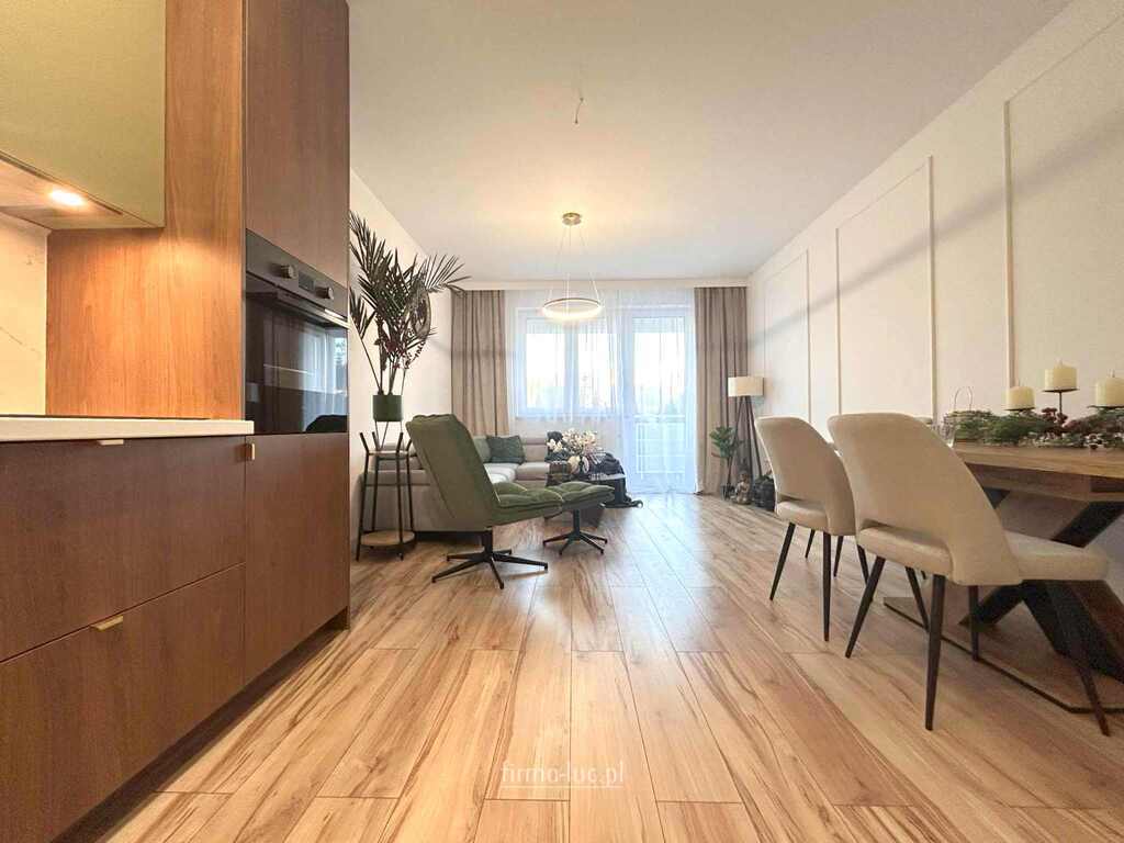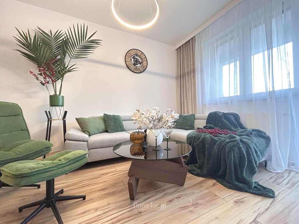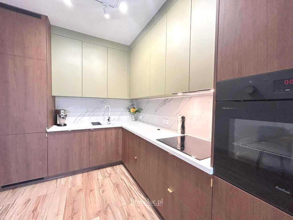 Nowe panele, gresy, drzwi wewnętrzne, oświetlenie oraz rozbudowana zabudowa meblowa w kuchni, korytarzu i łazience.