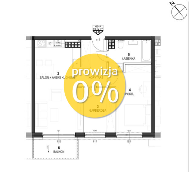 Przedmiotem oferty jest mieszkanie 3 pokojowe, położone na 3 piętrze w nowym bloku z windą, o powierzchni użytkowej 59,12 m².