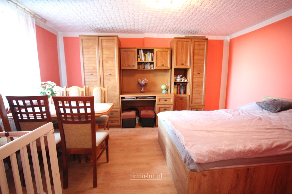 Dodatkowo w budynku znajduje się strych, który może pełnić funkcję magazynową lub zostać zaadaptowany według potrzeb.