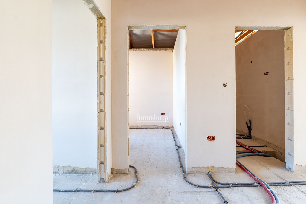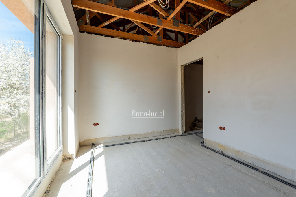 - Na piętrze znajdują się 2 duże sypialnie, gabinet, łazienka oraz komunikacja. Z jednej z sypialni wyjście na balkon z bardzo przyjemnym widokiem na okolicę.