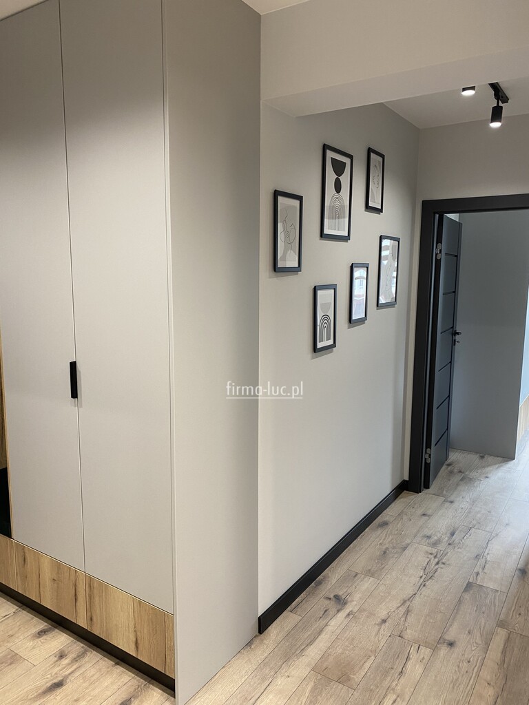 - sypialnia z łóżkiem oraz szafą zabudowaną